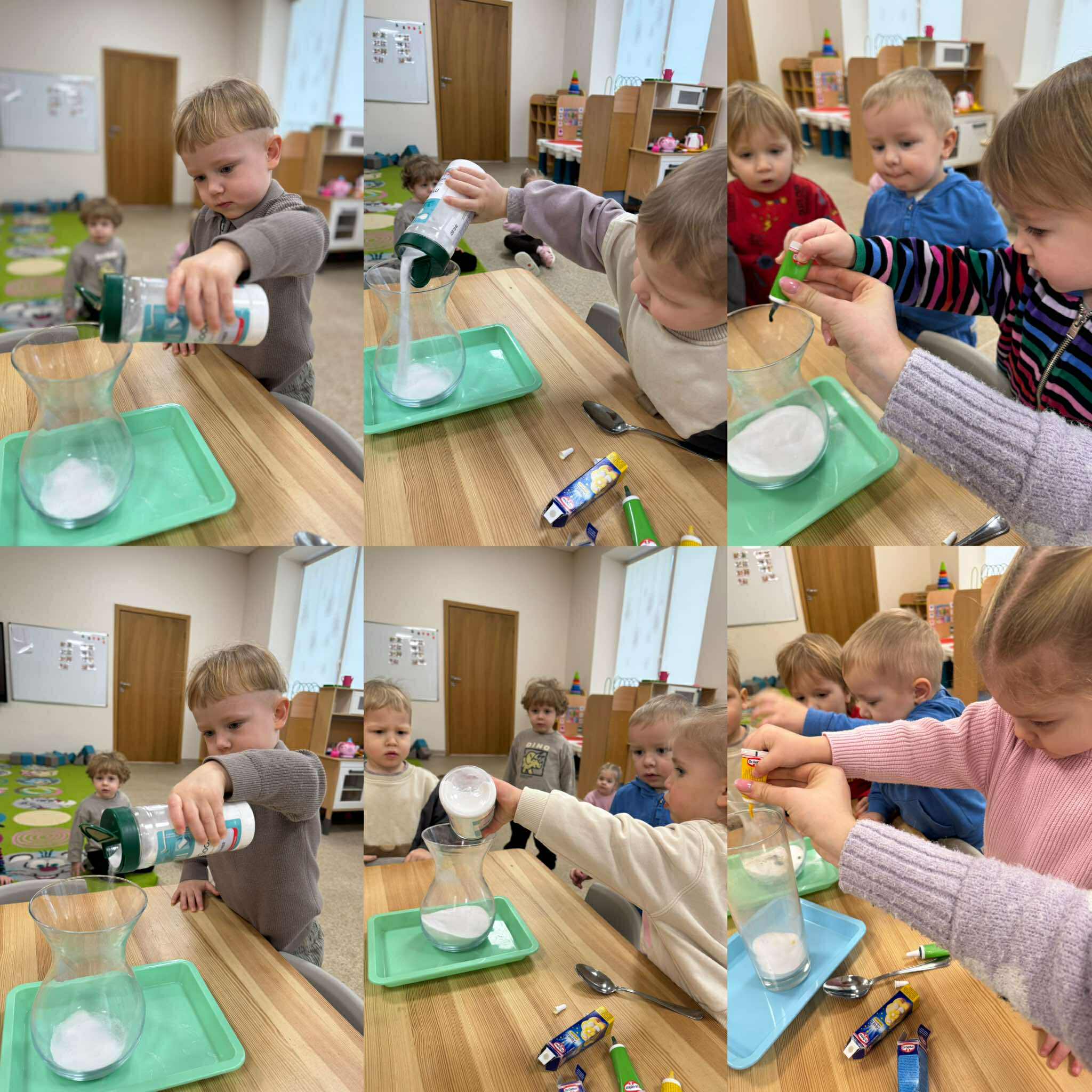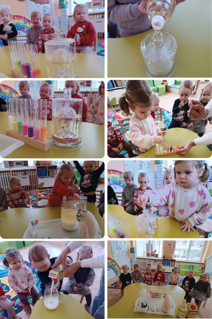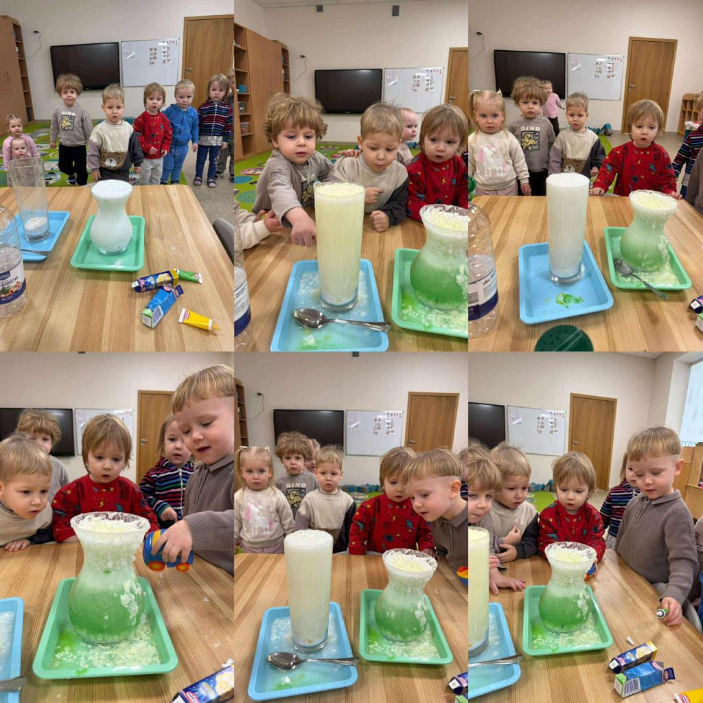 Vaikai atliko įvairius bandymus, stebėjo, kaip keičiasi spalvos, kaip išsiskiria burbuliukai, kaip oras ir vanduo gali sukurti netikėtų efektų. Eksperimentuose buvo naudojamos ir gamtinės medžiagos, kurios padėjo vaikams dar geriau pažinti gamtos savybes, atrasti jos paslaptis ir patirti tyrinėjimo džiaugsmą.