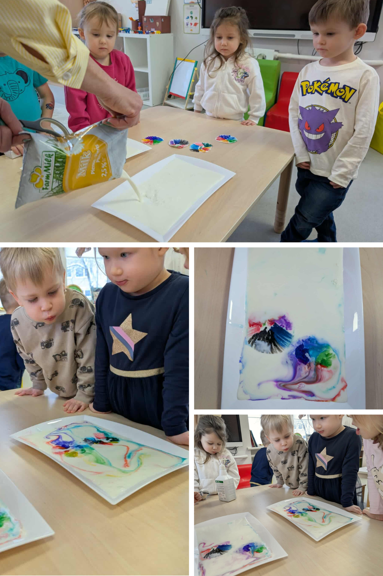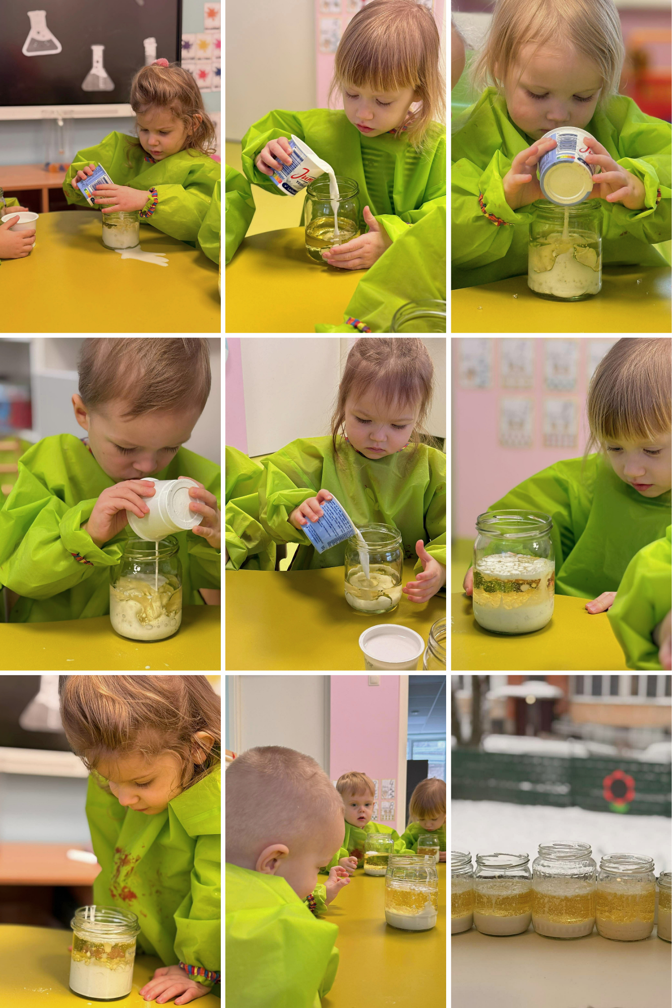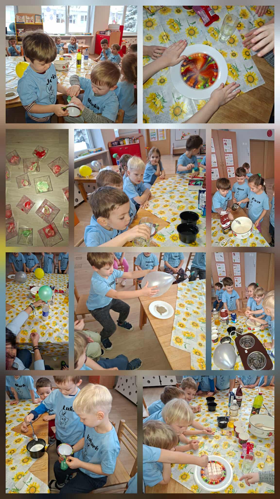 Vaikai atliko įvairius bandymus, stebėjo, kaip keičiasi spalvos, kaip išsiskiria burbuliukai, kaip oras ir vanduo gali sukurti netikėtų efektų. Eksperimentuose buvo naudojamos ir gamtinės medžiagos, kurios padėjo vaikams dar geriau pažinti gamtos savybes, atrasti jos paslaptis ir patirti tyrinėjimo džiaugsmą.