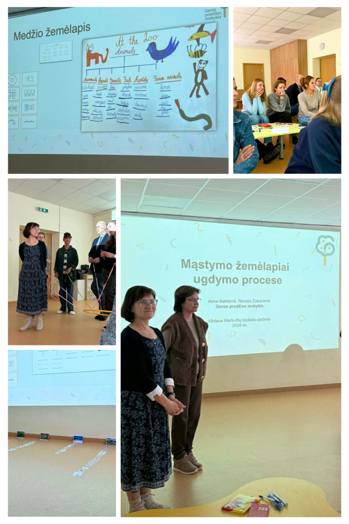 Darželyje vyko „Mąstymo žemėlapių mokykla“, kurios metu pedagogai gilino žinias apie mąstymo žemėlapių taikymą ugdymo procese. Mokymų metu buvo stiprinamos profesinės kompetencijos, ieškoma naujų būdų, kaip skatinti vaikų mąstymą, kūrybiškumą ir aktyvų įsitraukimą. Įgytos žinios bus taikomos kasdienėje pedagoginėje praktikoje, siekiant dar kokybiškesnio ugdymo. Nuoširdžiai dėkojame lektorėms, “Geros pradžios mokyklos” įkūrėjoms Almai Balnienei ir Renatai Zakarienei už įtraukius mokymus.