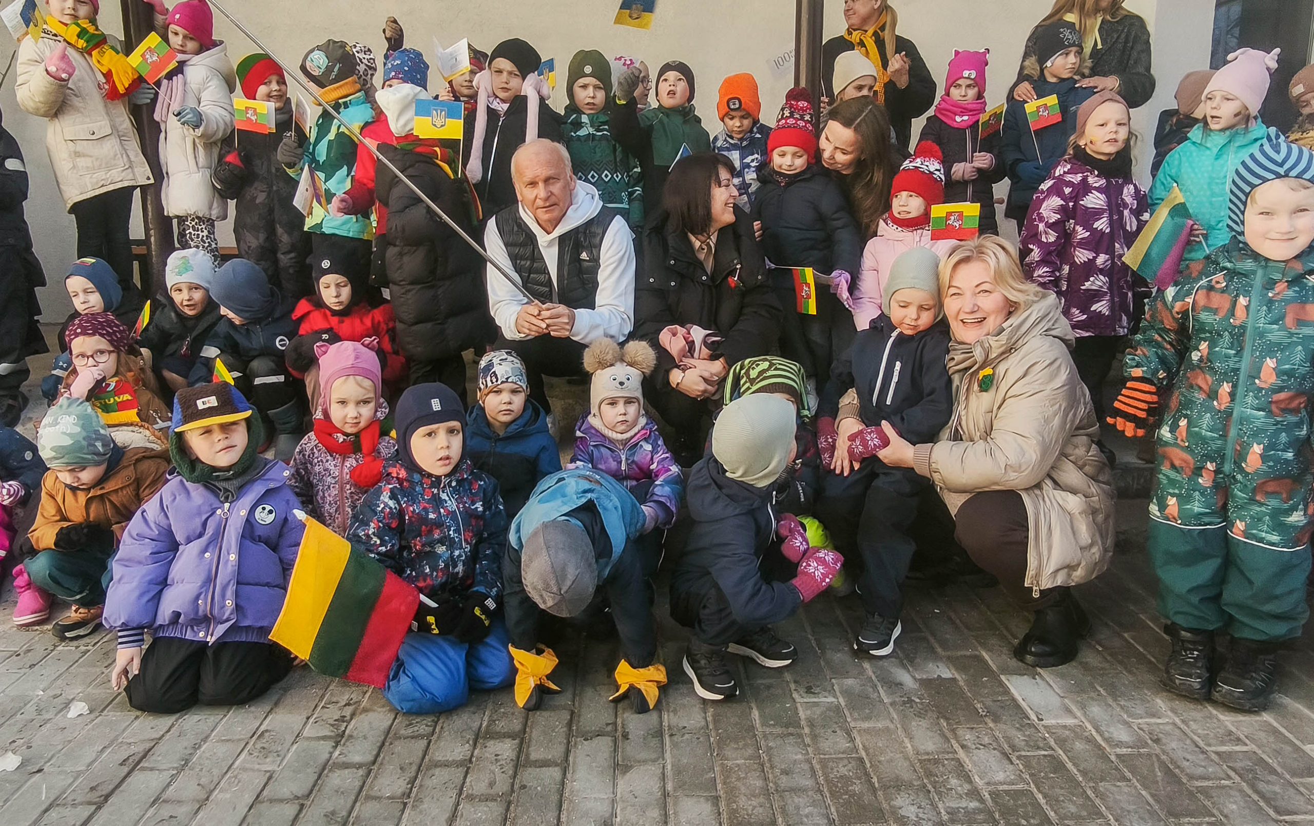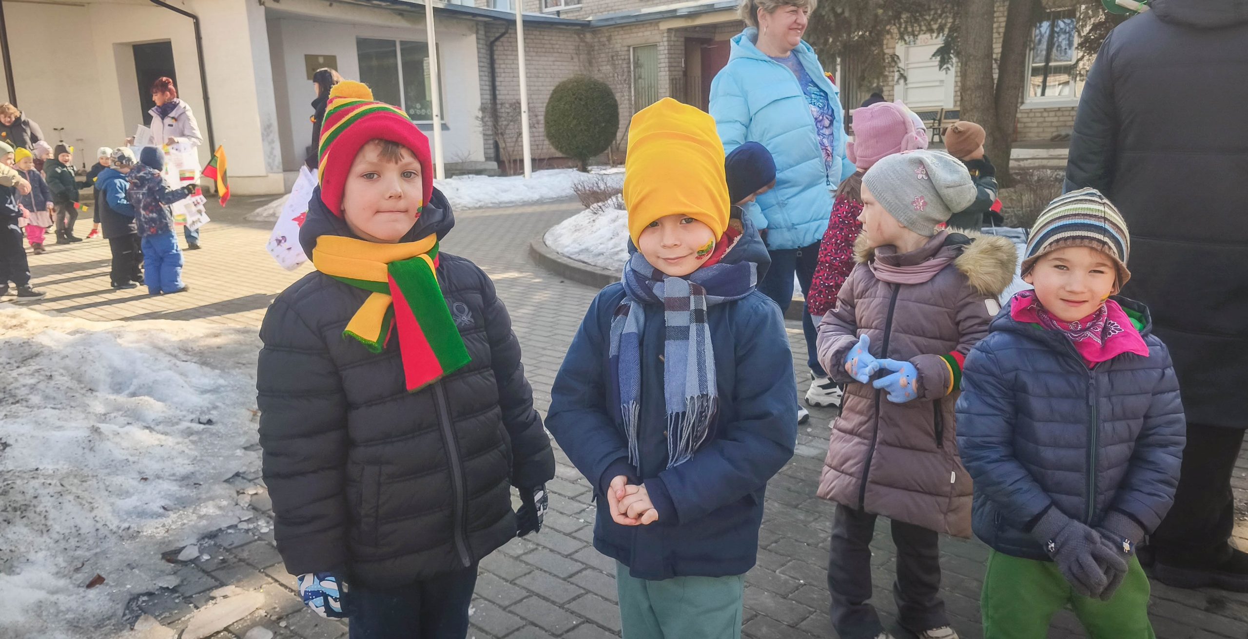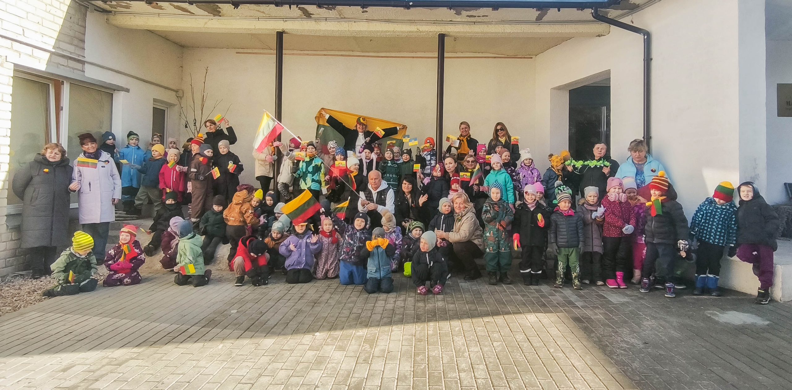 Pakiliai nusiteikę visi kartu sugiedojome Lietuvos valstybės himną, vaikai dainų akordais, šokių sūkuriu, patarlėmis, eilėraščiais sveikino Lietuvą.
