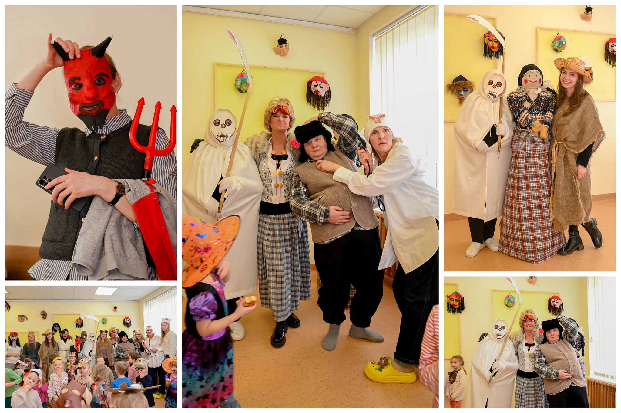 Visi pasipuošė įvairiausiomis kaukėmis, šoko, dainavo, žaidė linksmus žaidimus ir, žinoma, vijo žiemą iš kiemo! Skambėjo juokas, netrūko geros nuotaikos ir gardžių blynų kvapo.