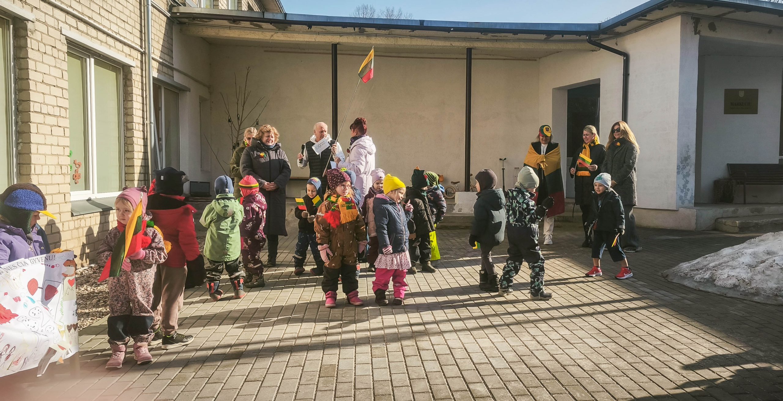 Vilniaus Markučių lopšelio-darželio bendruomenė ruošiasi Lietuvos valstybės atkūrimo minėjimui. Šventinę savaitę darželio aplinka ir grupių langai buvo puošiami trispalviais akcentais, organizuojami renginiai ir veiklos, iškilmingai bus giedamas Lietuvos valstybės himnas. Vaikučiai skirs kūrybingus darbelius, eilėraščius, muzikinius kūrinius, šokius šiai prasmingai šventei.